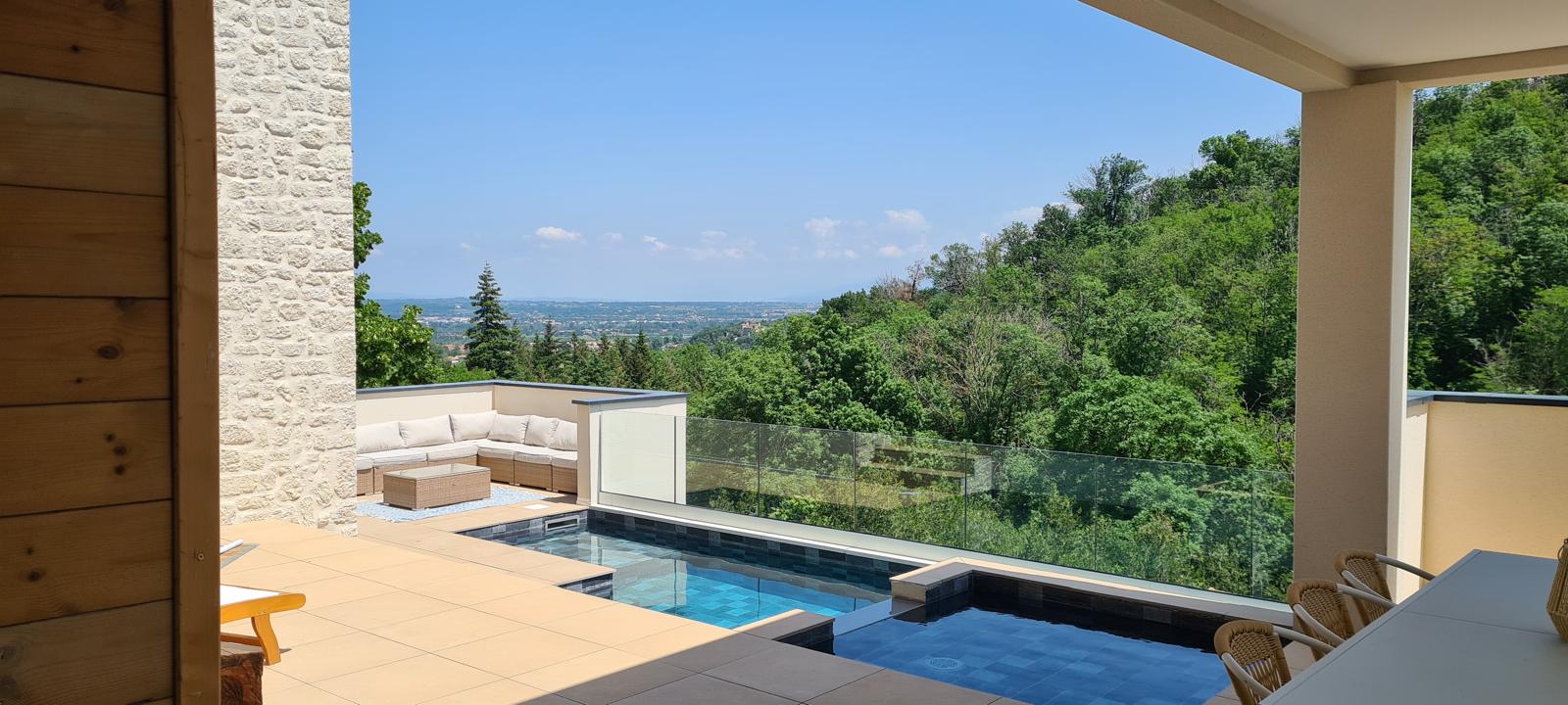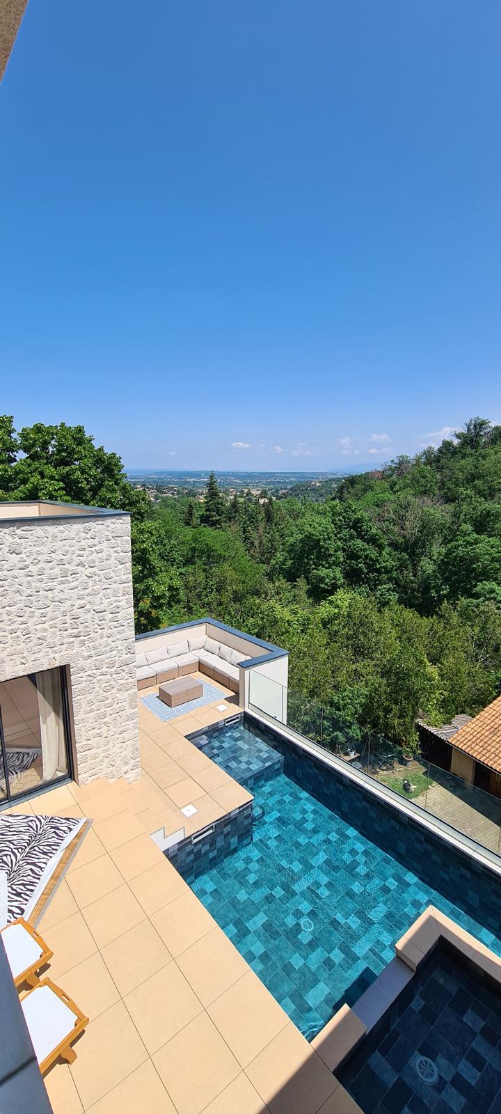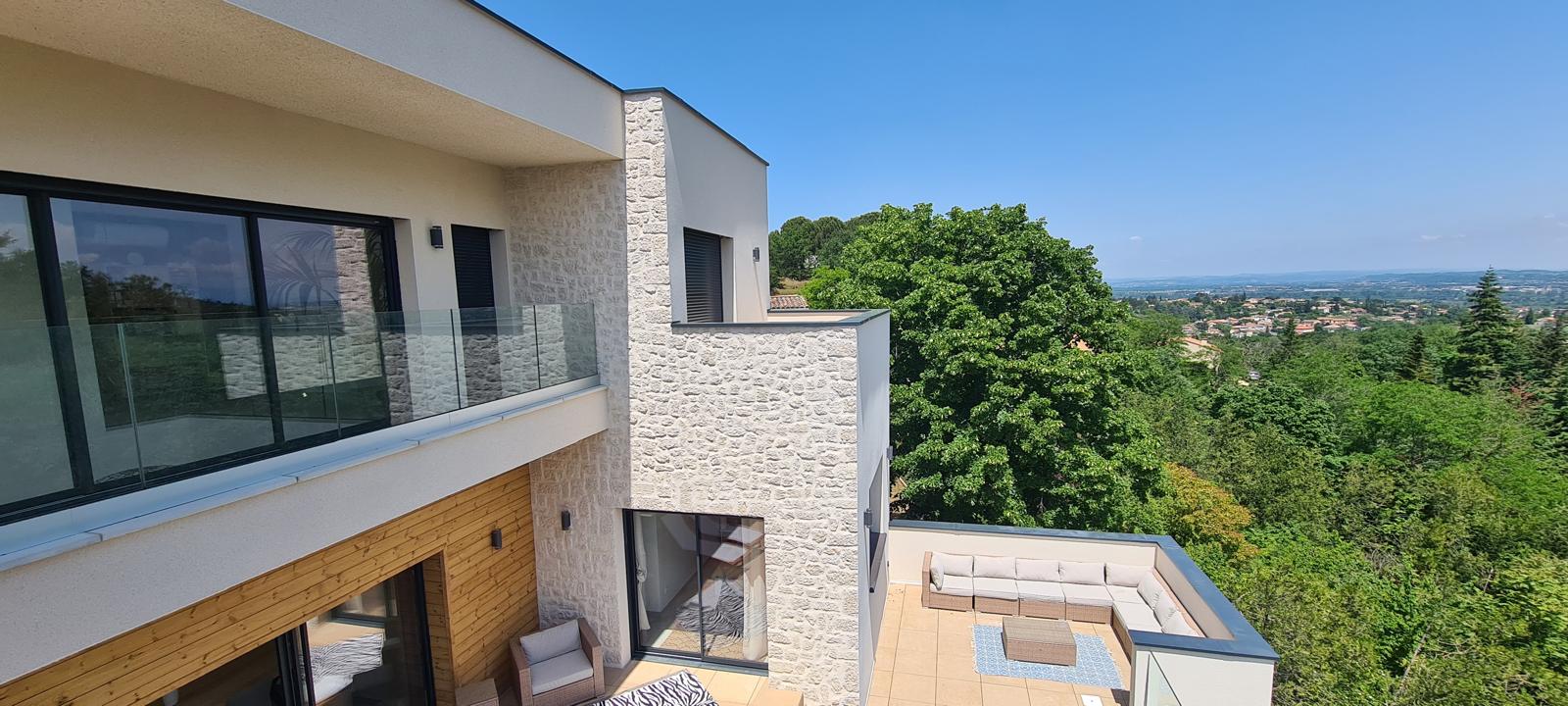 Nichée sur un terrain en pente dominant une belle ville ardéchoise, cette réalisation contemporaine s’inscrit avec élégance dans son environnement naturel. Le projet a été conçu pour tirer pleinement parti de la topographie du site et de la superbe vue panoramique qu’il offre.
